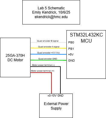 In this lab, a design was implemented on the MCU to use a quadrature motor encoder to calculate the velocity of a motor. The motor was connected to a power supply and powered with 0-10V DC to spin at a rate of up to 2-3 rev/s.